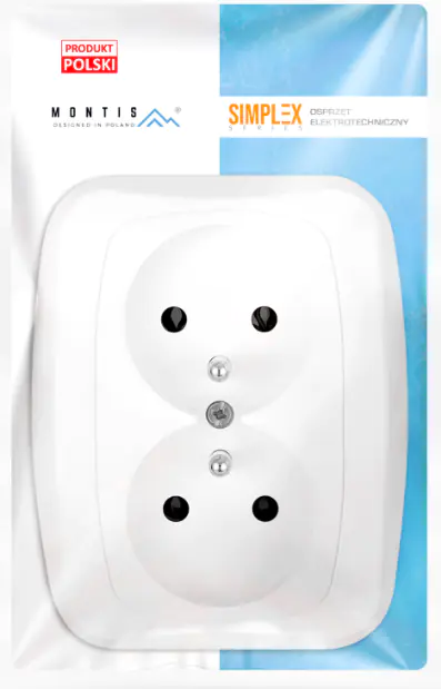 Gniazdo podwójne podtynkowe z serii SIMPLEX MT054 to łagodna linia osprzętu, która została stworzona na potrzeby odbiorców inwestycyjnych oraz domowych. Produkt w białej kolorystyce wygląda elegancko i klasycznie dzięki czemu doskonale komponuje się w każdym wnętrzu.