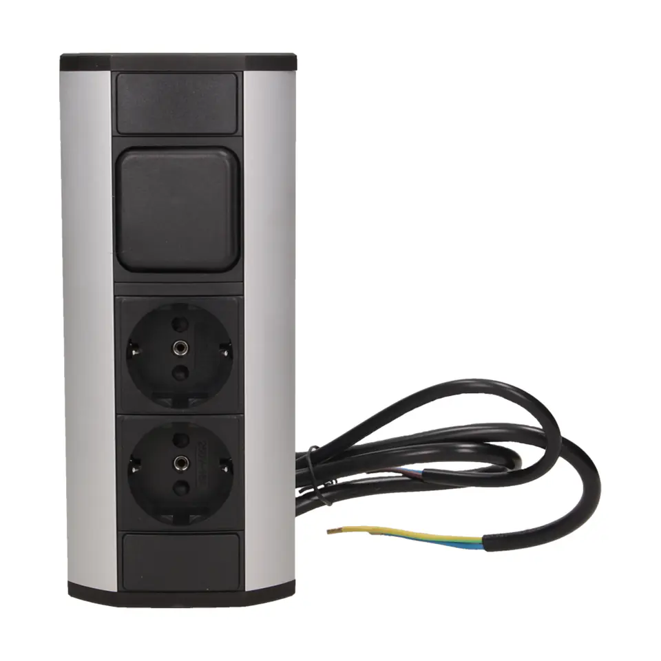 Gniazdo meblowe 2x2P+Z z wyłącznikiem, schuko, czarno-srebrne