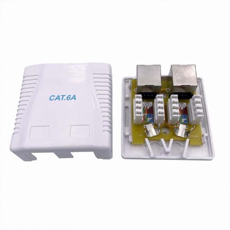 Dwuportowe gniazdo natynkowe RJ45 CAT6A to niezawodne rozwiązanie do tworzenia nowoczesnych instalacji sieciowych w biurze lub domu. Zmontowane na złączach keystone, zapewnia łatwy montaż oraz pewne i stabilne połączenie o wysokiej przepustowości. Dzięki ekranowaniu FTP skutecznie eliminuje zakłócenia elektromagnetyczne, gwarantując czysty i niezakłócony przesył danych. Obsługuje standardy KRONE i 110, co zwiększa jego uniwersalność i kompatybilność z różnymi systemami okablowania. W zestawie znajdują się śruby mocujące oraz taśma samoprzylepna, umożliwiające wygodną instalację gniazda na dowolnej powierzchni.