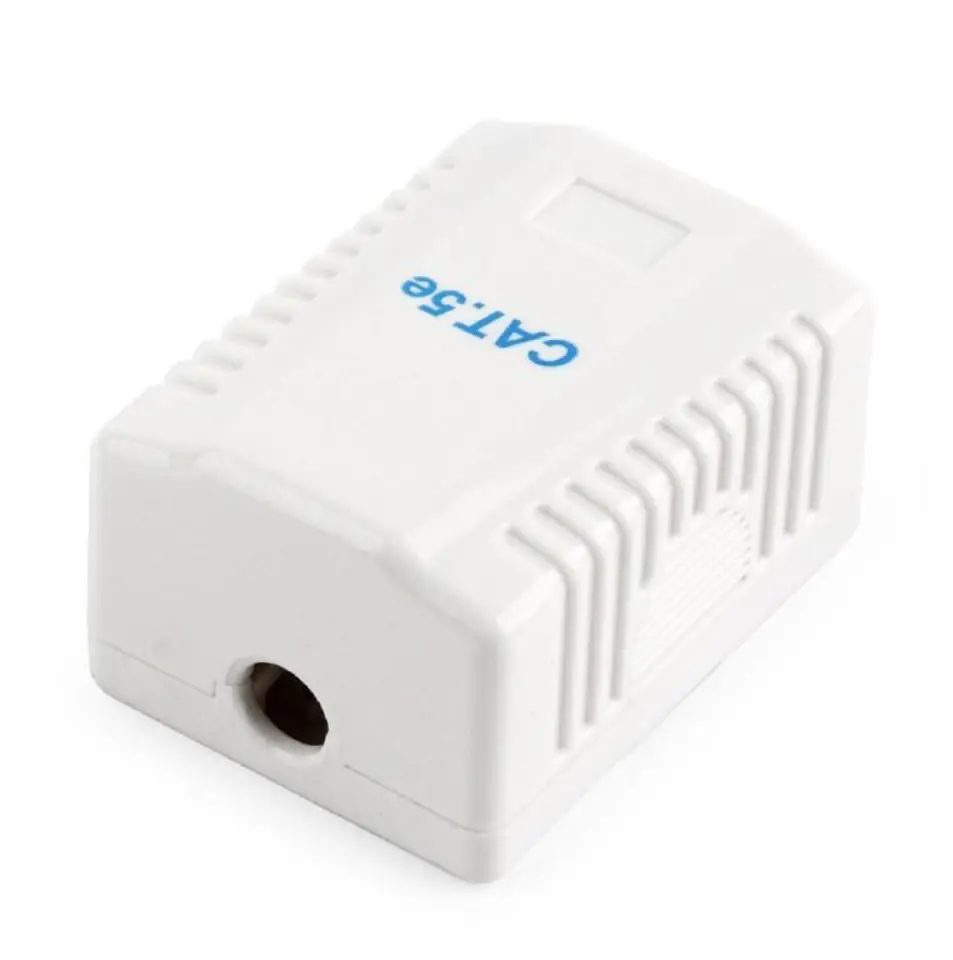 Gniazdo natynkowe jednoportowe kat. 5e zmontowane na złączu keystone. W zestawie znajdują się śruby mocujące i taśma samoprzylepna.