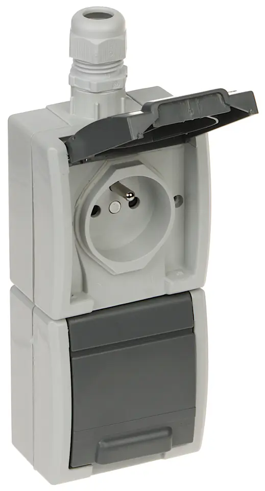 Natynkowe gniazdo hermetyczne z uziemieniem i przesłoną torów prądowychProdukt spełnia klasę szczelności IP65