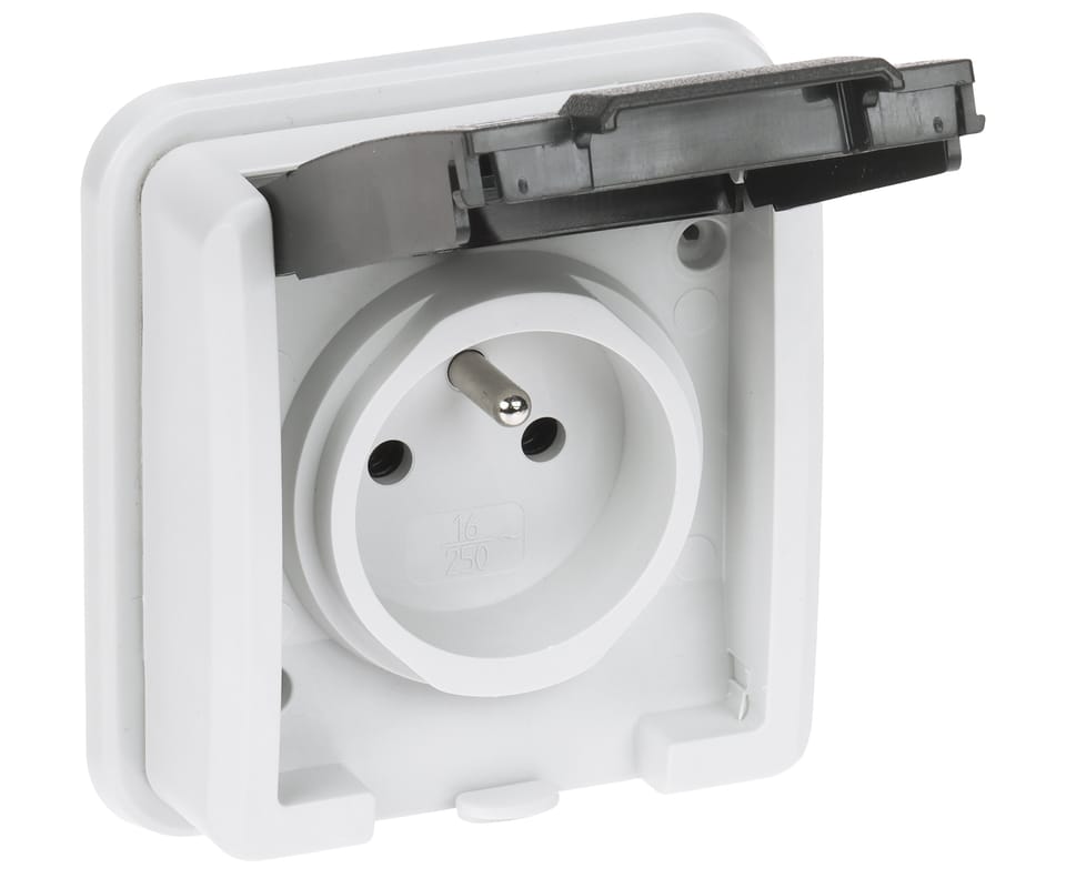 Podtynkowe gniazdo hermetyczne z uziemieniem i przesłoną torów prądowychProdukt spełnia klasę szczelności IP55