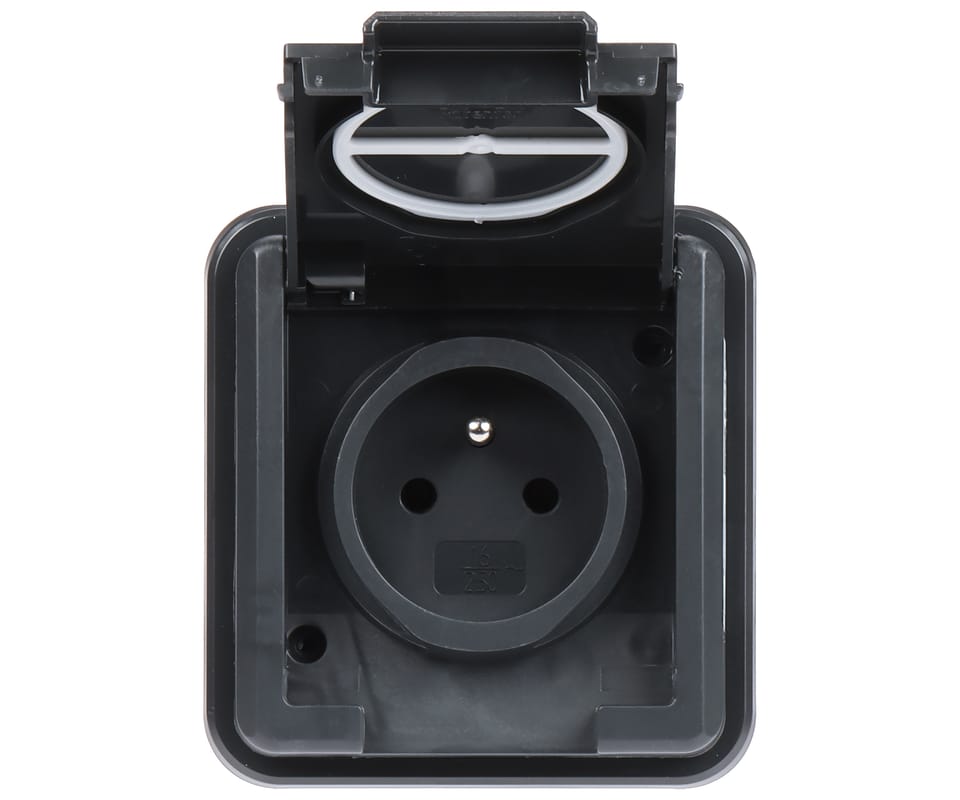 Podtynkowe gniazdo hermetyczne z uziemieniem i przesłoną torów prądowychProdukt spełnia klasę szczelności IP55