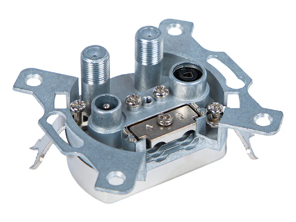 <div>Gniazdo końcowe ONYX (natynkowe) jest przeznaczone do instalacji RTV-SAT (multiswitchowych i z sumatorem RTV-SAT). Każdą instalację RTV-SAT należy zakańczać gniazdem, ponieważ dzięki nim realizuje się wydzielenie sygnałów: R, TV, 2*SAT. Gniazdo posiada bardzo dobre dopasowanie elektryczne.</div><div>Gniazdo jest stosowane do przyłączania tunerów PVR (Personal Video Recorder) - dwu głowicowy tuner z dyskiem twardym. Tuner tego typu potrzebuje dostęp do dwóch niezależnych sygnałów satelitarnych. Aby możliwy był montaż tego typu gniazda konieczne jest wcześniejsze położenie dwóch kabli koncentrycznych (zalecamy DIGITSAT 102), pomiędzy multiswitchem a puszką przewidzianą do montażu gniazda.</div><div><br /></div><div>Innym zastosowaniem gniazda jest realizacja kanału zwrotnego. W takiej sytuacji również wymagane dwa kable DIGITSAT 102, jednak jeden kable jest stosowany do transmisji sygnału tzw. kanału zwrotnego. Kanałem tym transmituje się zmodulowany sygnał z tunera do punktu gdzie znajduje się wzmacniacz TV. Zmodulowany sygnał TV dodaje się do sygnału antenowego.</div><div><br /></div><div><strong>Dane techniczne:</strong></div><div><strong>- Pasma pracy: </strong>R-TV-2xSAT</div><div><strong>- Zakres częstotliwości:</strong> 5-68, 118-862, 950-2400 [MHz]</div><div><strong>- Dopasowanie w pasmach: </strong>R, TV: >45 dB</div><div><strong>- Tłumienie w pasmach R, TV:</strong> >48 dB</div><div><strong>- Tłumienie w paśmie IF (SAT1):</strong> <3,5 dB</div><div><strong>- Dopasowanie w paśmie IF (SAT2):</strong> >40 dB</div><div><strong>- Tłumienie w paśmie IF (SAT2):</strong> <2 dB</div>