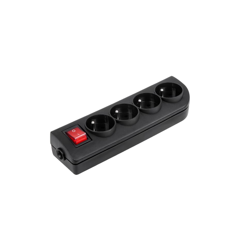 Gniazdo przedłużacza x 4 z uziemieniem i wyłącznikiem czarne GN-40W-2