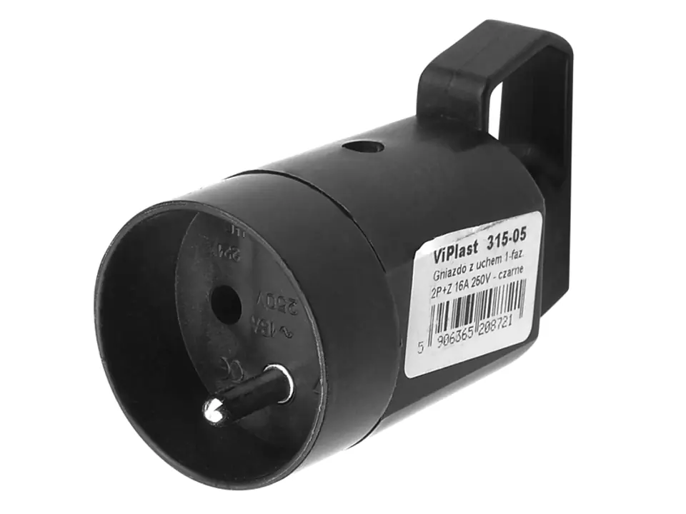Gniazdo z uchem z uziemieniem 2P+Z 16A 250V IP20 czarne 1LM