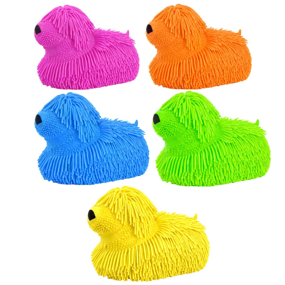 Zabawka ma formę uroczego psa z licznymi miękkimi frędzlami, które nadają jej ciekawy wygląd oraz zapewniają dodatkowe wrażenia sensoryczne podczas zabawy. Frędzle poruszają się podczas ściskania i rozciągania zabawki, co sprawia, że zabawa jest jeszcze bardziej atrakcyjna.