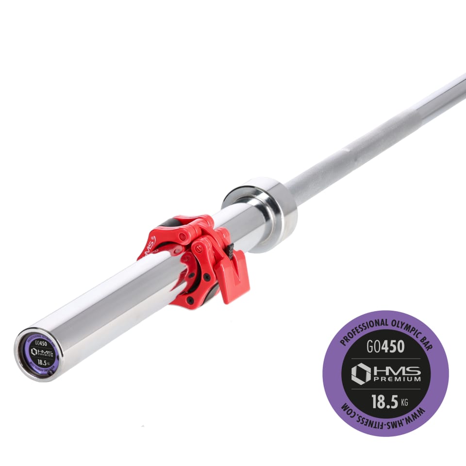 GO450 + ZG1000R) GRYF OLIMPIJSKI 18.5KG 2200MM HMS Z ZACISKAMI LOCK JAW RE