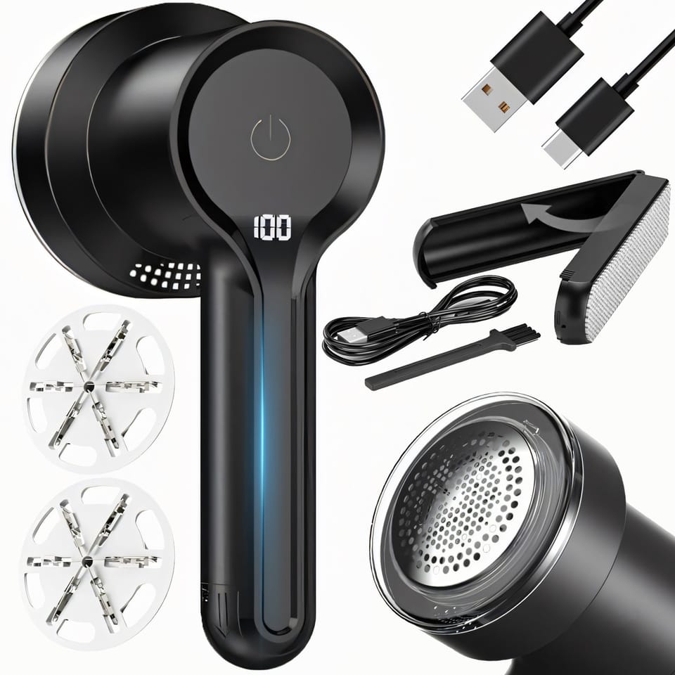 Kod producenta: 1029588Golarka do ubrań Retoo ER1230 to wydajne i praktyczne urządzenie do usuwania zmechaceń z odzieży i tkanin. Wyposażona w silnik o mocy 5W oraz 3-stopniową regulację prędkości (6500 / 7500 / 8500 RPM), skutecznie radzi sobie nawet z uporczywymi kłaczkami. Wbudowany wyświetlacz LCD informuje o poziomie baterii i wybranym trybie pracy. Urządzenie posiada pojemny akumulator 1200 mAh, który zapewnia do 540 minut działania, a ładowanie odbywa się przez port USB-C. Golarka wykonana jest z trwałego tworzywa ABS i została wyposażona w system bezpieczeństwa automatycznie wyłączający silnik po zdjęciu pokrywy ostrzy.Cechy produktu: