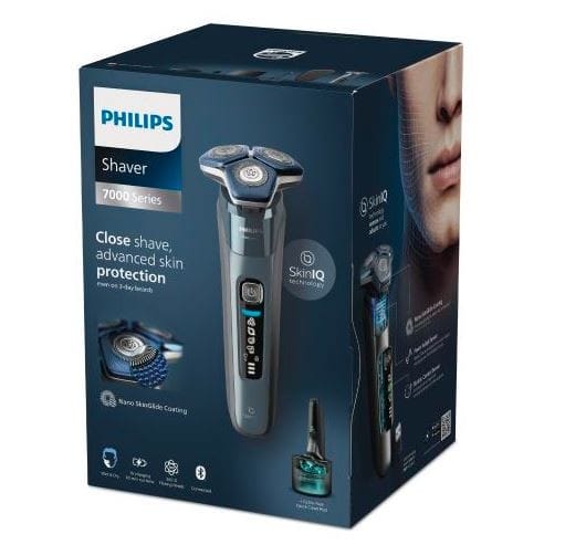 Golarka Philips z serii 7000 gładko przesuwa się po skórze, jednocześnie przycinając każdy włos nawet na 3-dniowym zaroście. Golarka wyposażona jest w zaawansowaną technologię SkinIQ, która wykrywa, dostosowuje się i prowadzi ruch, zapewniając lepszą ochronę skóry.