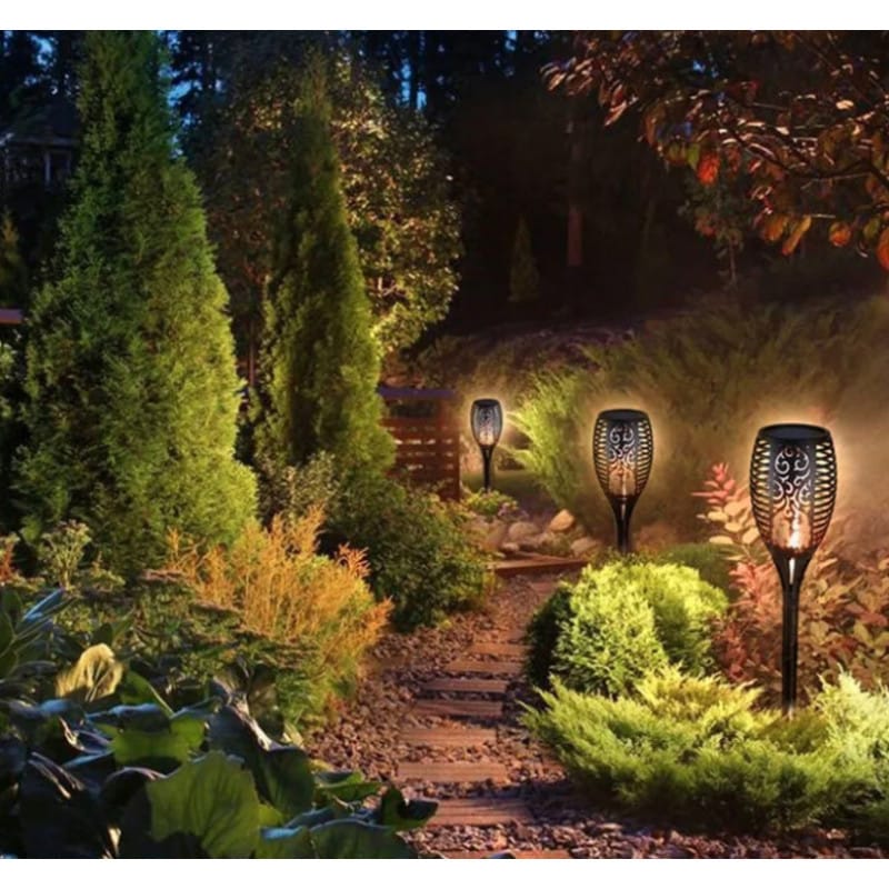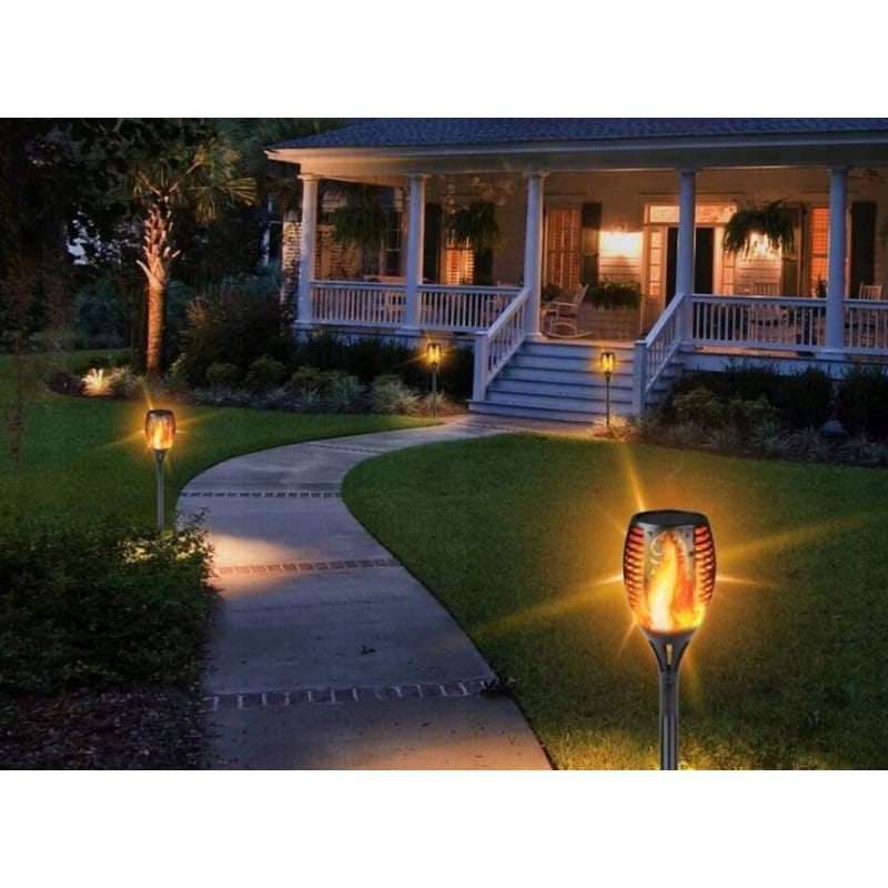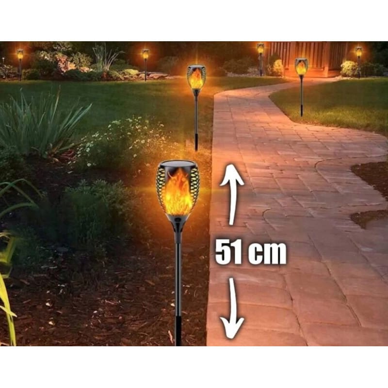 LAMPA SOLARNA OGRODOWA POCHODNIA LED ZESTAW 6 SZTUKIdealne oświetlenie do ogrodu.Pięknie się prezentują w nocy.Tanie i efektywne źródło światła w ogrodzie. Pochodnia solarna idelana do oświetlenia każdego ogrodu, podwórka. Dzięki pobieraniu darmowej energii słonecznej przez panel i magazynowaniu jej w akumulatorze, lampa staje się bardzo ekologiczna i energooszczędna. Uruchamia się po zapadnięciu zmroku.SPECYFIKACJA TECZNICZNA:Czujnik zmierzchu: TakBarwa światła: Imitacja płomieniaAkumulator: 1,2V 600 mAhPanel solarny: 2V 30mAhŹródło światła: LED SMDMoc: 1,2WJasność: 30lmKąt świecenia: 360°Wymiary: 75 x 75 x 510 [mm]Klasa odporności: IP44Temperatura pracy: -20°~+60°Materiał obudowy: ABSCzas ładowania na pełnym słońcu: ok. 6-8 godzinCzas pracy: ok. 8 godzinslimtex