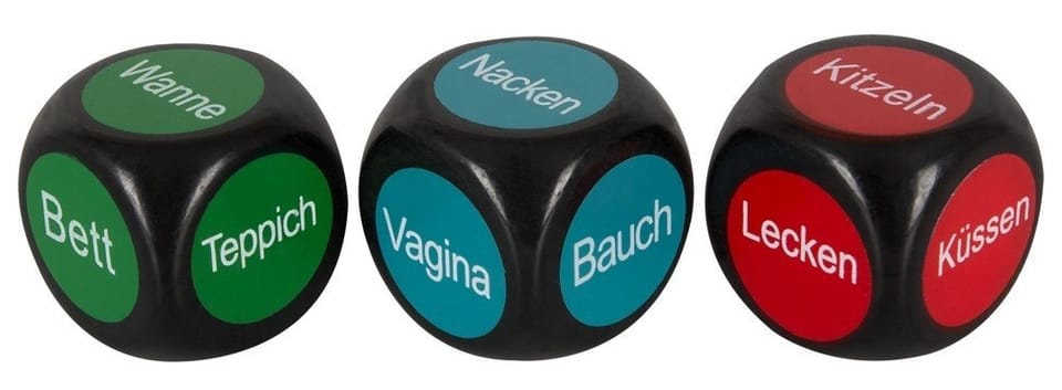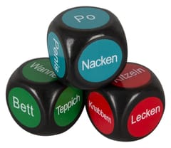 Wystarczy jedna rolka: Czerwona kostka decyduje o działaniu, niebieska kostka - o części ciała, która ma być stymulowana, a zielona kostka - o lokalizacji. 3 kostki w zestawie.