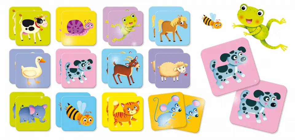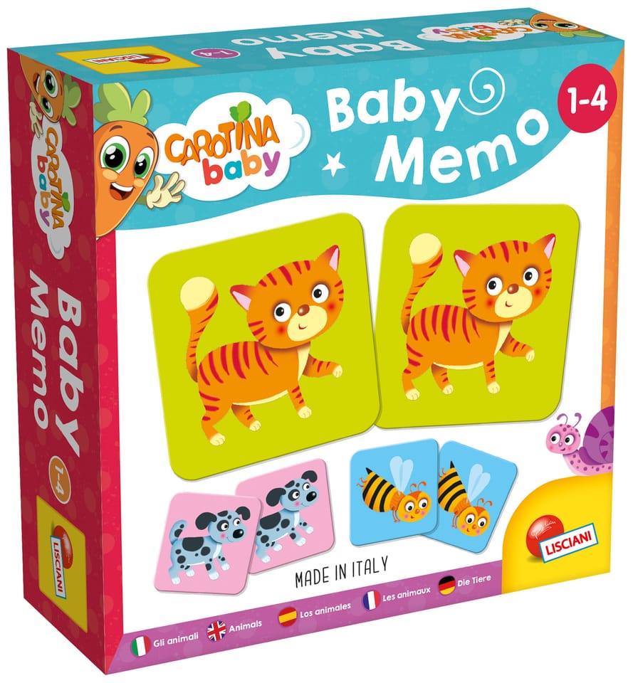 Gra Memoria Zwierzęta to gra, która rozwija pamięć. Zadaniem dzieci jest dopasowywanie do siebie par obrazków z kolorowymi zwierzętami. Seria Carotina Baby to seria Lisciani, skierowana do dzieci w wieku 1-4 lat.