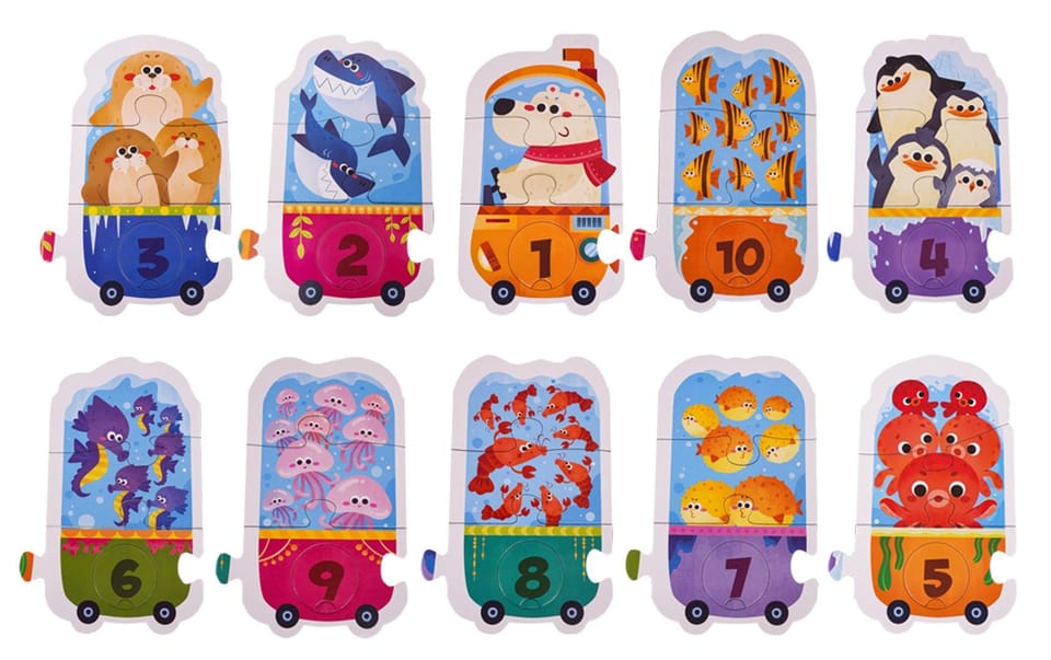 | Gra edukacyjna, matematyczna Wagonik dla dzieci od 3-go roku życia. Gra składa się z 40 elementów. Zadaniem gracza jest ułożyć pociąg składający się z 10 wagoników. Każdemu wagonikowi, dziecko musi przyporządkować cyferkę oraz obrazek z ilością zwierzątek odpowiadający cyferce wagonika. Gra uczy logicznego myślenia, spostrzegawczości oraz rozpoznawania cyferek w zakresie 1 do 10. Opakowanie posiada wygodną rączkę do przenoszenia, tak by dziecko mogło zabrać ją wszędzie ze sobą. Funkcje gry:- gra edukacyjna,- przeznaczona dla dzieci od 3-go roku życia,- znakomicie wykonana, w żywych kolorach,- wymaga spostrzegawczości,- rozwija koordynację ręka-oko,- uczy logicznego i szybkiego myślenia,– uczy rozpoznawania cyferek w zakresie 1 do 10,– świetny sposób na wspólne spędzenie czasu,- idealny sposób na nudę lub oderwanie dzieci od komputerów, telefonów, tabletów. | |