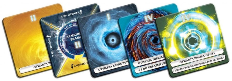 - 7 kopert (zawierających arkusze Magów i Nemezis; są one otwierane w miarę postępu ekspedycji; koperty mają następujące oznaczenia:1d, 2a, 2b, 3a, 3b, 4 oraz KONIEC),