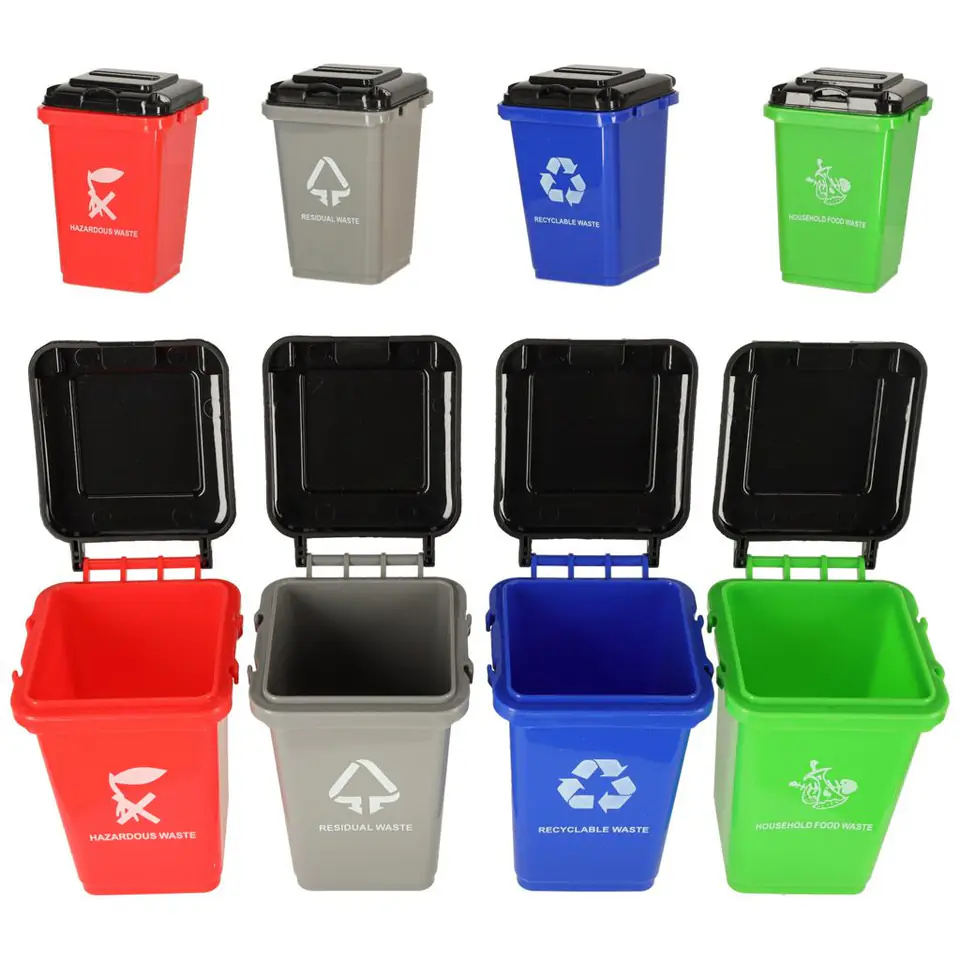 4 różnokolorowe kosze na śmieci
