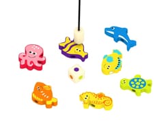 Łowienie rybek to fantastyczna gra, którą dzieci bardzo lubią. Gra przeznaczona jest dla 1 - 4 graczy. Pudełko w którym łowimy rybki to jeziorko, które trzeba samemu złożyć. 12 różnorodnych zwierzątek morskich można łowić na wędkę z magnesem. Rzuć kostką i złap zwierzątko morskie o takim samym kolorze. Jeśli nie ma już zwierzątka o wyrzuconym kolorze, przekaż kostkę następnemu graczowi. Wygrywa gracz, który złowi najwięcej zwierzątek.