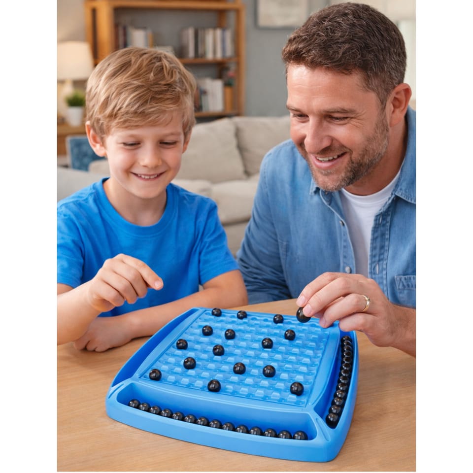 Plansza do gry została wykonana z trwałego tworzywa sztucznego i posiada specjalne pola, które pomagają stabilnie układać kulki podczas rozgrywki. Solidna konstrukcja zapewnia wygodną i bezpieczną zabawę.