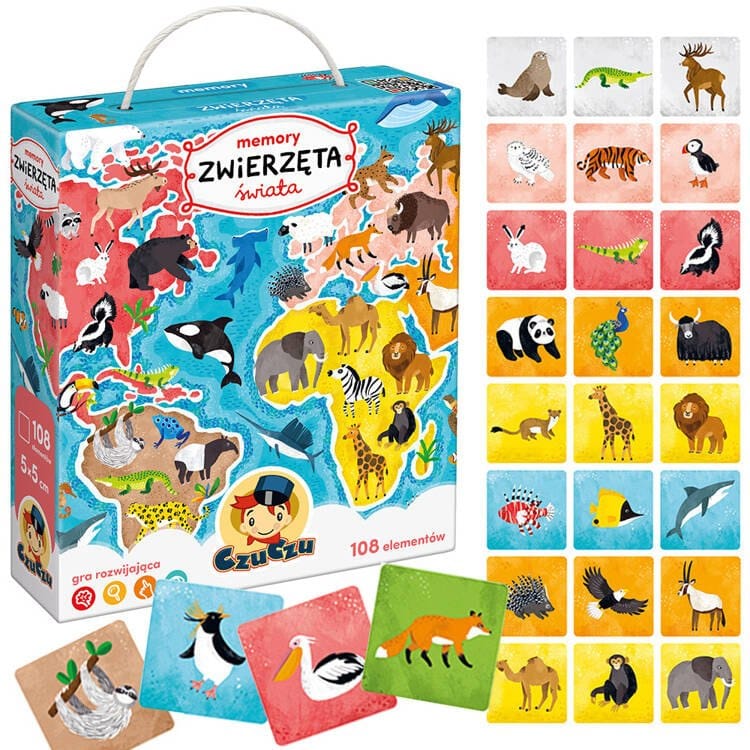 Ćwiczcie umysł, trenujcie pamięć i doskonalcie koncentrację! CzuCzu Mempory Zwierzęta świata to ponadczasowa gra dla dzieci i dorosłych - sprawdzi się jako układanka dla najmłodszych i pierwsza gra, podczas rozgrywek w grupie przedszkolnej i w trakcie spotkania z przyjaciółmi. Zawsze i wszędzie jest czas na odrobinę wesołej zabawy! Elementy możecie wykorzystać do mnóstwa kreatywnych zabaw, których poziom trudności z łatwością dostosujecie do wieku i zainteresowań uczestników.
