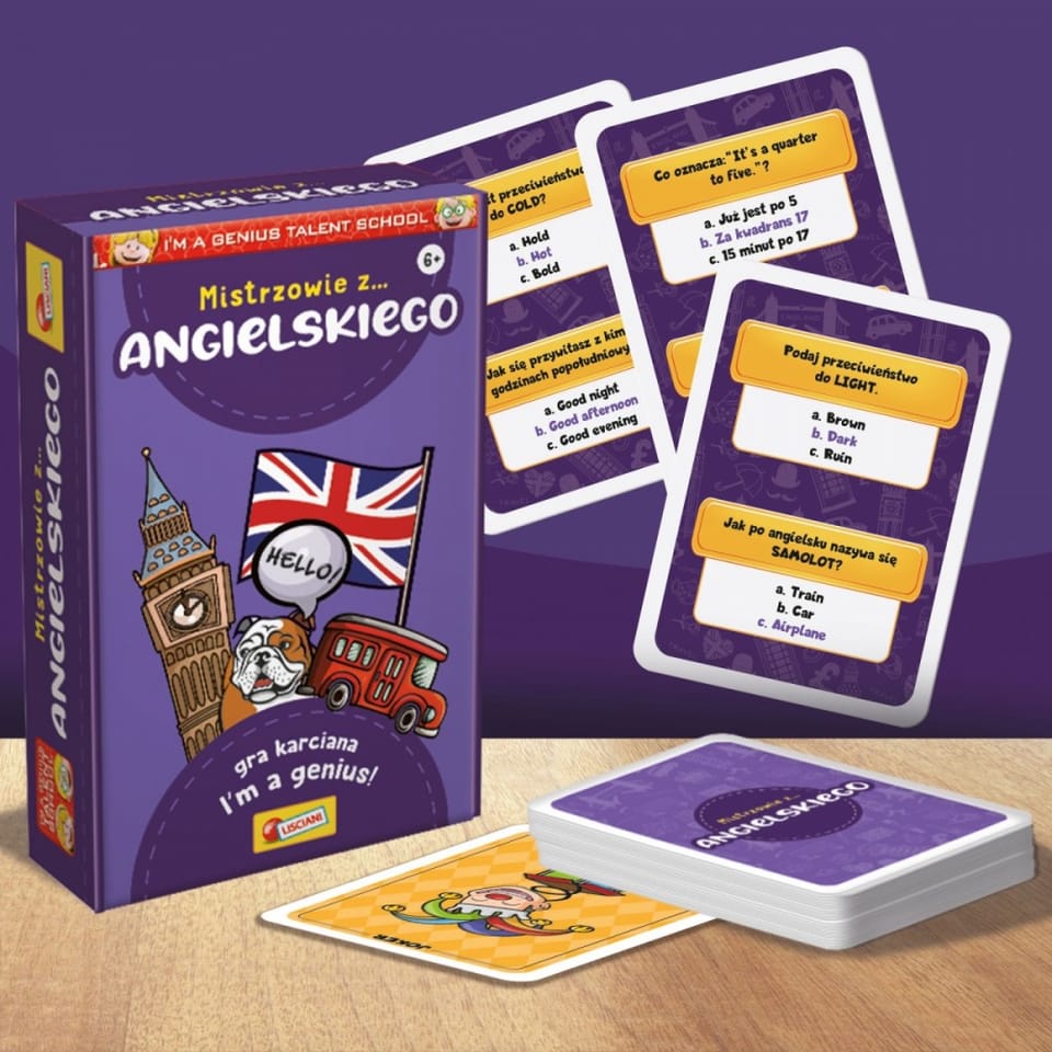 Mistrzowie z... to edukacyjna gra karciana, w którą może grać od 2 do 4 graczy. Jedna partia trwa około 20 minut. Wygrywa ten gracz, który jako pierwszy zdobędzie 5 kart, poprawnie odpowiadając na pytania.Mistrzowie z to wyjątkowa kolekcja gier edukacyjnych dla dzieci! W opakowaniu znajduje się wiele zabawnych quizów z bardzo prostymi zasadami, które zostały opracowane na podstawie programu szkoły podstawowej. Na co czekasz? Weź udział w wyzwaniu z przyjaciółmi i zostań niekwestionowanym MISTRZEM!Cała seria składa się z 6 tematycznych tytułów: POLSKIEGO, ANGIELSKIEGO, GEOGRAFII, MATEMATYKI, NAUK PRZYRODNICZYCH oraz PALEONTOLOGII.