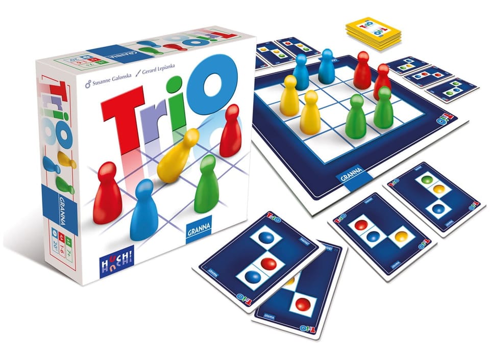 W grze Trio gracze będą przestawiali jeden z pionków na planszy tak, by stworzyć ustawienie wskazane na jednej z kart.