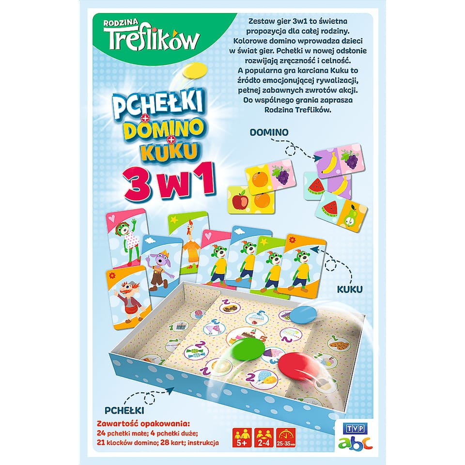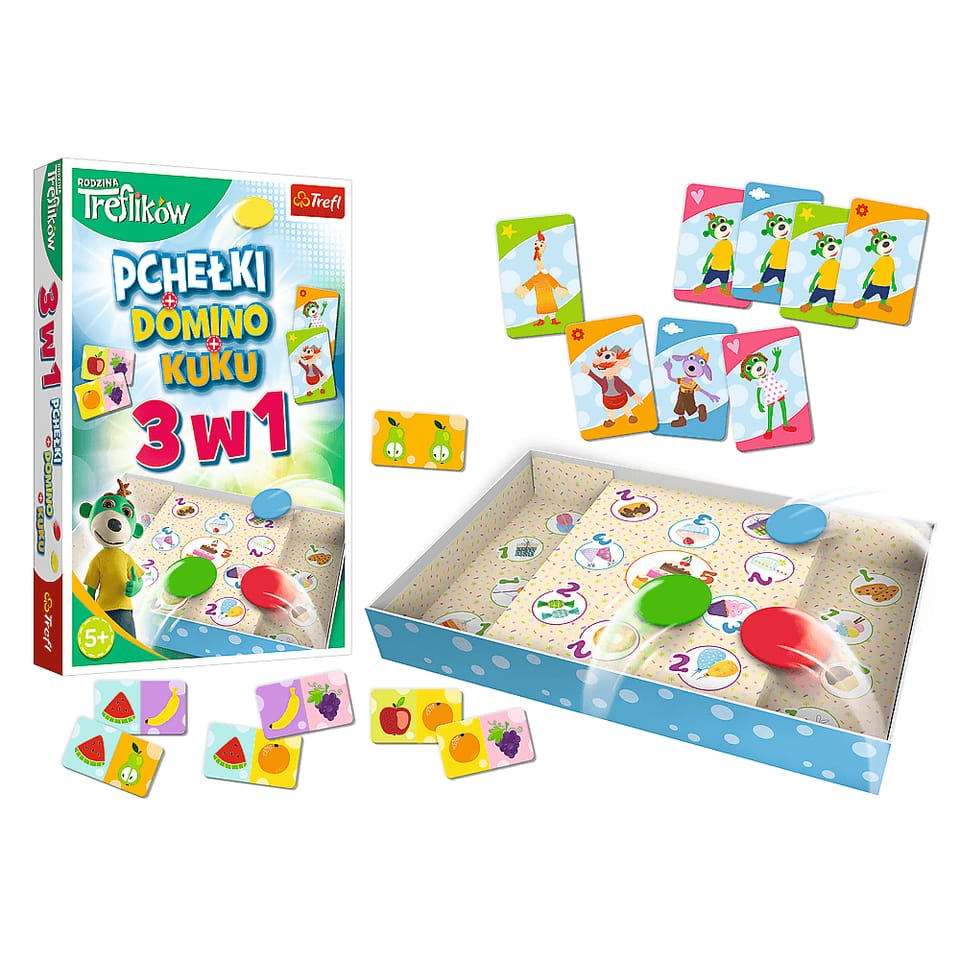 Gra rodzinna Rodzina Treflików 3w1 Domino Pchełki Kuku Trefliki Trefl 01921