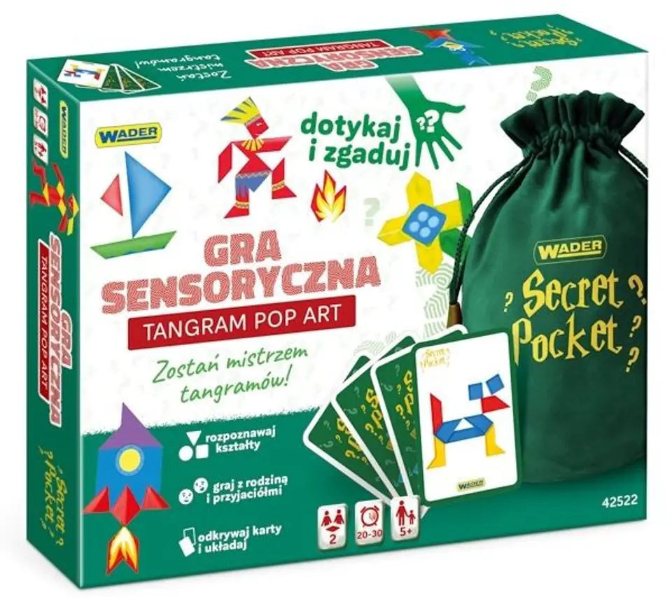 Gry sensoryczne Secret Pocket od Wader-Woźniak, odkryją przed dziećmi bogaty świat zmysłów. Gry sensoryczne czyli takie, które oddziałują na dotyk, wzrok lub słuch dzieci i stymulują ich rozwój fizyczny i umysłowy. Zaletą gier sensorycznych od Wader jest ich prostota, ciekawy koncept, wysoka jakość poszczególnych elementów zabawki oraz atrakcyjna szata graficzna.
