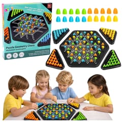 Puzzle geometryczne trójkąty to innowacyjna gra planszowa, która łączy strategię, logiczne myślenie oraz wyobraźnię przestrzenną. Rozgrywka opiera się na rozciąganiu gumek na specjalnych kołeczkach umieszczonych na planszy, tworząc trójkąty i zdobywając kolejne obszary. Każdy ruch ma znaczenie i wymaga przemyślanego planowania, ponieważ jeden błąd może dać przeciwnikowi przewagę.
