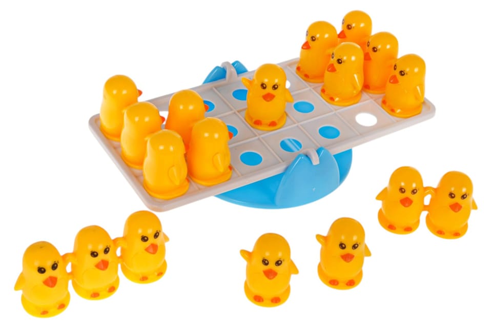 Gra zręcznościowa Balansująca Kaczka dla dzieci od 3-go roku życia. Ta fascynująca gra, zapewni Twojemu dziecku, długie godziny edukacyjnej zabawy. Gra składa się z podstawy, w której znajdują się wgłębienia i małych figurek kaczek. Zadaniem dziecka jest układanie kaczek po jednej i drugiej stronie, tak, żeby utrzymać równowagę podstawy. Gra rozwija umiejętności dodawania, logiczne myślenie, wyobraźnie i kreatywność. Dziecko poznaje podstawy matematyki i fizyki. Funkcje gry: - gra edukacyjno-zręcznościowa, - przeznaczona dla dzieci od 3-go roku życia, - znakomicie wykonana, - porównuje masę przedmiotów, - uczy jak uzyskać równowagę poprzez dodawanie lub odejmowanie kaczuszek, - świetny sposób na wspólne spędzenie czasu, - idealny sposób na nudę lub oderwanie dzieci od komputerów, telefonów, tabletów.