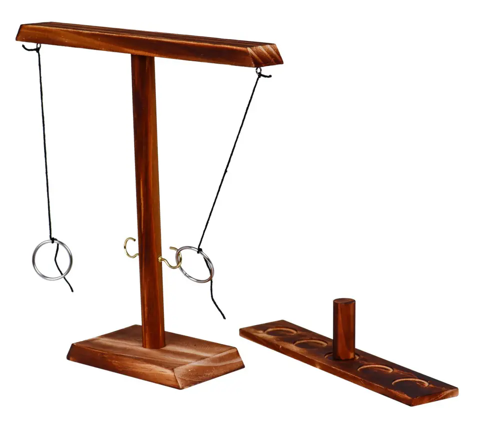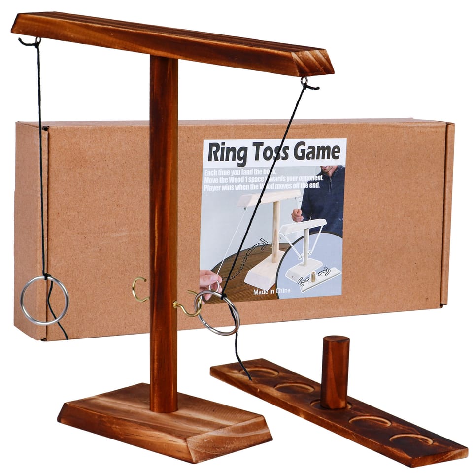 - zestaw do gry ok. 30 cm x 28 cm x 8,2 cm, - kołek o średnicy ok. 2 cm i wysokości ok. 5 cm, - listwa ok. 25,2 cm x 5,2 cm, - średnica pierścienia ok. 3,8 cm, - długość haczyka ok. 2,5 cm, - opakowanie ok. 31,5 cm x 14 cm x 5 cm. | |