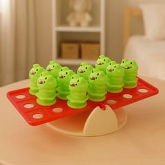 Gra zręcznościowa Balansująca Żaba to edukacyjna zabawka stworzona z myślą o dzieciach, które poprzez zabawę chcą rozwijać logiczne myślenie oraz zdolności manualne. Zadaniem dziecka jest układanie figurek żabek po obu stronach balansującej podstawy w taki sposób, aby zachować równowagę całej konstrukcji. Każdy ruch wymaga przemyślenia i obserwacji, dzięki czemu zabawa uczy planowania oraz przewidywania skutków kolejnych działań, co pozytywnie wpływa na rozwój poznawczy dziecka.