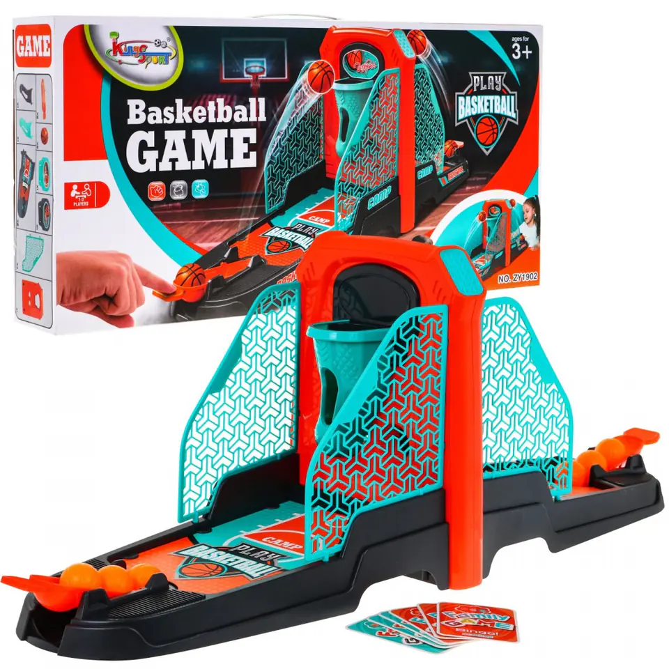 | - 2 boiska do koszykówki, - 6 piłek do koszykówki, - 2 kosze, - 4 osłonki boczne, - 2 mechanizmy do strzelania piłką, - naklejki. |