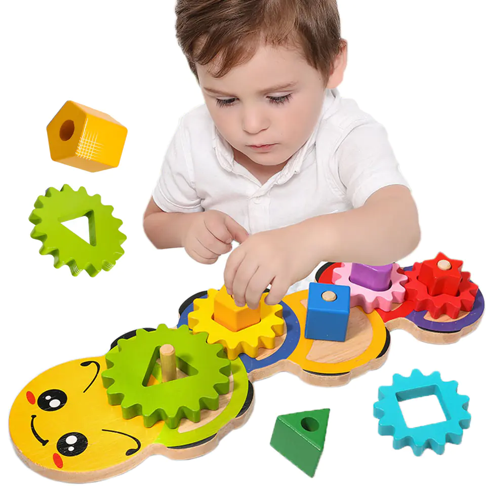 Gra składa się z dziewięciu różnych kształtów, które należy umieścić w odpowiednich otworach na gąsienicy. Dziecko musi dopasować kształty do otworów, co wymaga skupienia i precyzji. Zabawa pomaga w rozwijaniu umiejętności rozpoznawania kształtów i kolorów, a także naukę dopasowywania.