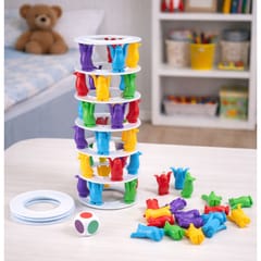 Zabawa polega na budowaniu wysokiej wieży z kolorowych elementów, a następnie ostrożnym wyciąganiu poszczególnych kolumn zgodnie z kolorem wskazanym przez kostkę. Każdy ruch wymaga skupienia i stabilnej ręki, ponieważ wieża z każdą turą staje się coraz mniej stabilna. Przegrywa ten gracz, który spowoduje zawalenie konstrukcji.