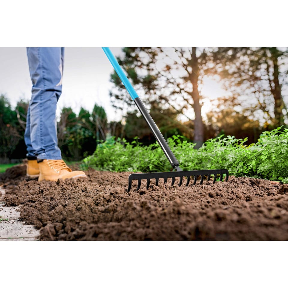 GRABIE METALOWE UNIWERSALNE IDEAL PRO CELLFAST Idealne do wyrównywania, rozbijania grud ziemi i grabienia trawy. Hartowana, wytrzymała głowica ze stali borowej. Aluminiowy, lekki, trzonek prosty o wysokiej wytrzymałości. System SAFETOUCH™ zapewnia pewny chwyt i wygodę użytkowania, a także zabezpiecza przed przypadkowymi uszkodzeniami. Otwór do zawieszania ułatwia przechowywanie. Dane Techniczne: Ilość zębów: 14 Technologie: SAFETOUCH™ Materiały: aluminum, kompozyt z włóknem szklanym, stal borowa Waga: 0,9 kg Szerokość robocza: 370 mm Długość: 1550 mm