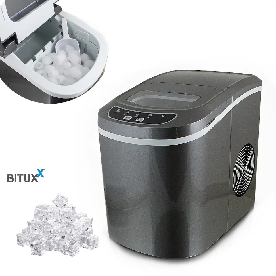Kompaktowa, mobilna kostkarka do lodu. Niezastąpiona do szybkiego i prostego przygotowywania kostek lodu , wystarczy uzupełnić zbiornik z wodą i wcisnąć guzik wybierając przy tym odpowiedni rozmiar kostek lodu. Charakteryzuje się niezawodnością i cichą pracą. Przenośna, lekka, kompaktowa oraz nie ma konieczności stałego podłączenia do wody. Idealne do użytku w domu. Wytwarza ok. 10-12 kg kostek lodu w ciągu 24 godzin, natomiast po 12 minutach wytwarza porcje lodu 9 kostek.