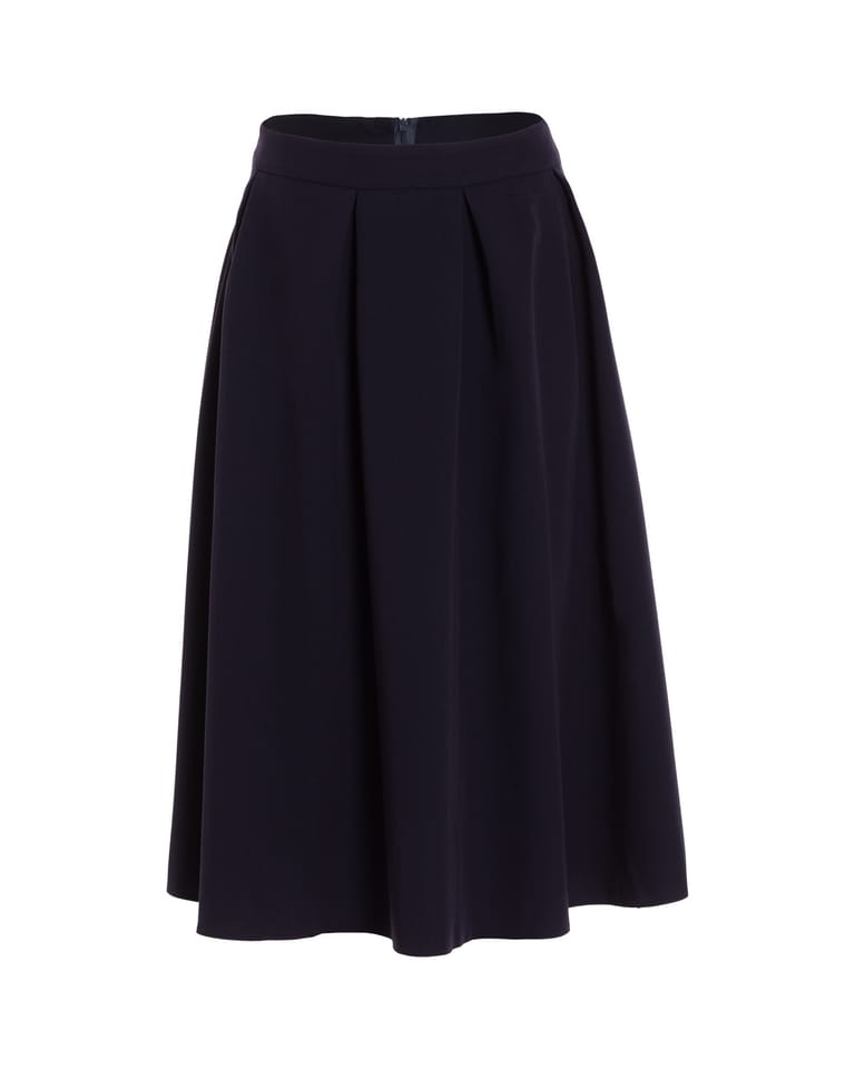 Rozkloszowana spódnica o długości midi z zakładkami to świetny wybór na każdą okazję! Model posiada kieszenie ukryte w bocznych szwach. Spódnica posiada wyraźnie zaznaczoną linię talii. Skład: 60% poliester, 35% wiskoza, 5% elastan Spódnica bez podszewki, zapinana z tyłu na zamek. Modelka na zdjęciu ma 176 cm wzrostu i ma na sobie rozmiar 36.