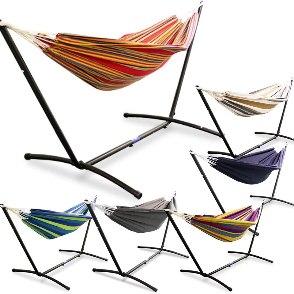 Ten wygodny i funkcjonalny hamak pozwoli Ci odpocząć i cieszyć się czasem spędzonym w ogrodzie. Nie potrzebujesz drzewka, ponieważ w zestawie znajduje się odpowiednia, stabilna, stalowa rama. Materiał idealnie dopasowuje się do ciała i sprawia, że pozycja leżenia jest niezwykle komfortowa i zapewnia stuprocentowy relaks. Metalowy stelaż wykonany jest bardzo starannie, dlatego długo posłuży Tobie i Twojej rodzinie.