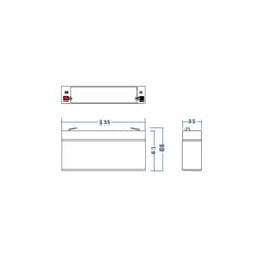 Description: Capacity: 4ahVoltage: 6VWarranty: 24 monthsSurge protection: YesType: VRLA AGMProduct code: AGM38Size: 135 x 35 x 61 mmWeight: 0, 6kgTerminal: Faston 187 (F1)Max. discharge current: above 3/C Compatibility list: Compatible with following battery models : PB3.2-6, SLA06032, TP6-3.2 Compatible with following devices : AM 3.4, EP 3, PB 3.2, TP 6