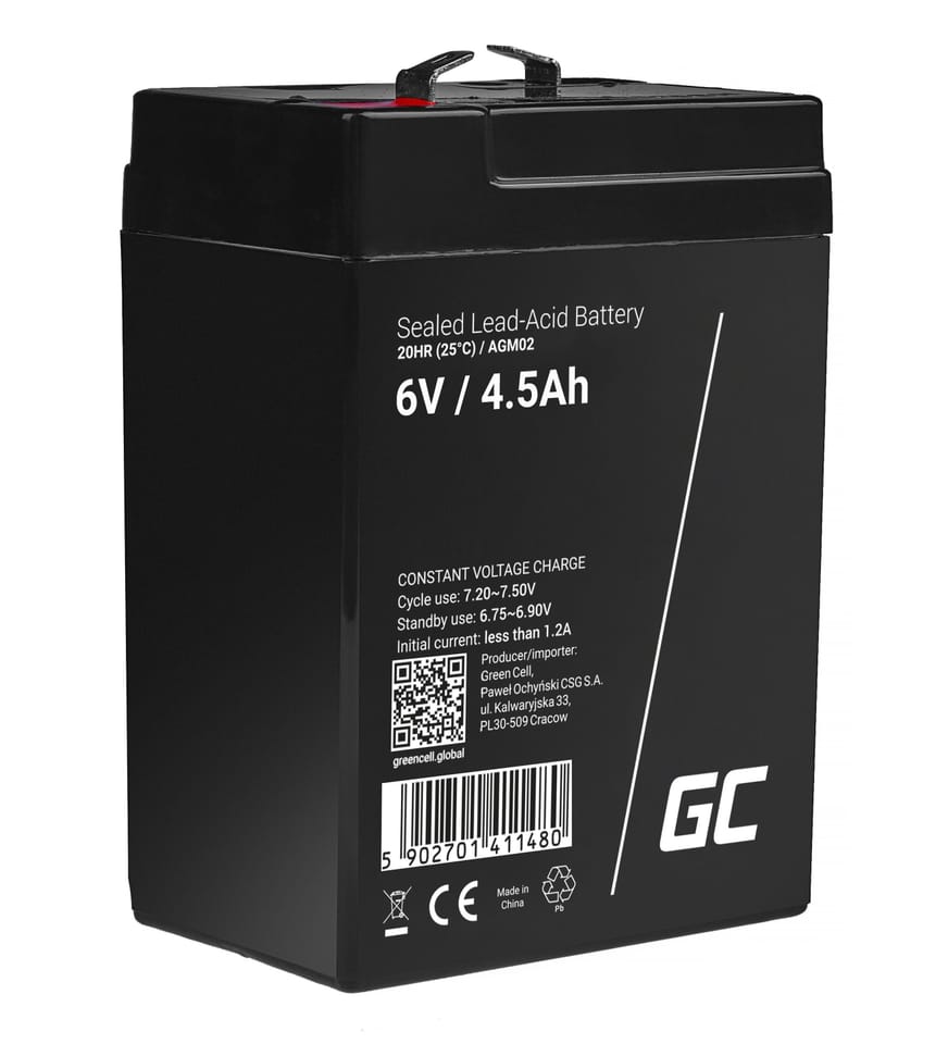 Bezobsługowy Akumulator AGM VRLA Green Cell AGM02 6V 4.5Ah (do systemu alarmowego, kasy fiskalnej, zabawki)