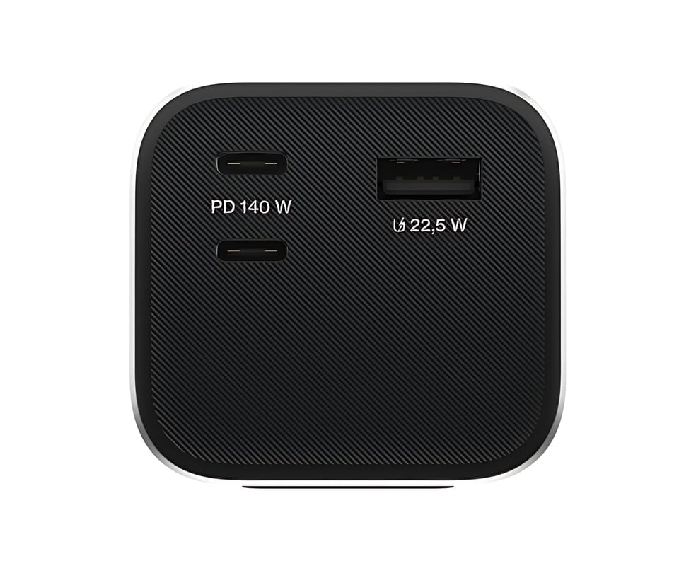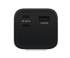 Wyjścia zasilania: | USB-C1/USB-C2 : 5 V / 3 A, 9 V / 3 A, 12 V / 3 A, 15 V / 3 A, 20 V / 5 A, 28 V / 5 A - 140 W (max) USB-A : 4.5 V / 5 A, 5 V / 4.5 A, 5 V / 3 A, 9 V / 3 A, 12 V / 1.5 A - 18 W (max) |