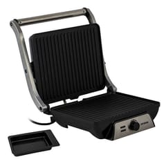 Domowy grill ORAVA GRILLCHEF 4 spełni oczekiwania nawet najbardziej wymagających miłośników grillowania. Idealny do przygotowania soczystych mięs, ryb czy warzyw. Wyposażony w dwie płyty grillowe pokryte nieprzywierającą, karbowaną powierzchnią, zapewnia wygodę użytkowania i doskonałe rezultaty kulinarne. Po osiągnięciu ustawionej temperatury, zapala się lampka kontrolna, informująca o gotowości do pracy. Sok z przygotowywanych potraw odprowadzany jest do praktycznego pojemnika ociekowego. Grill jest łatwy w czyszczeniu i przechowywaniu, dzięki czemu sprawdzi się w każdej kuchni.Specyfikacja techniczna