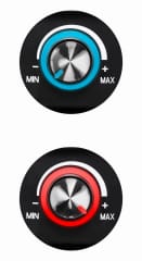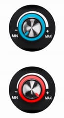 Termostat w sposób płynny za pomocą pokrętła reguluje temperaturę płyty grillowej. Kolory pokazują stan nagrzania płyty.
