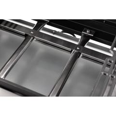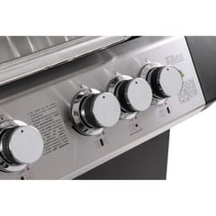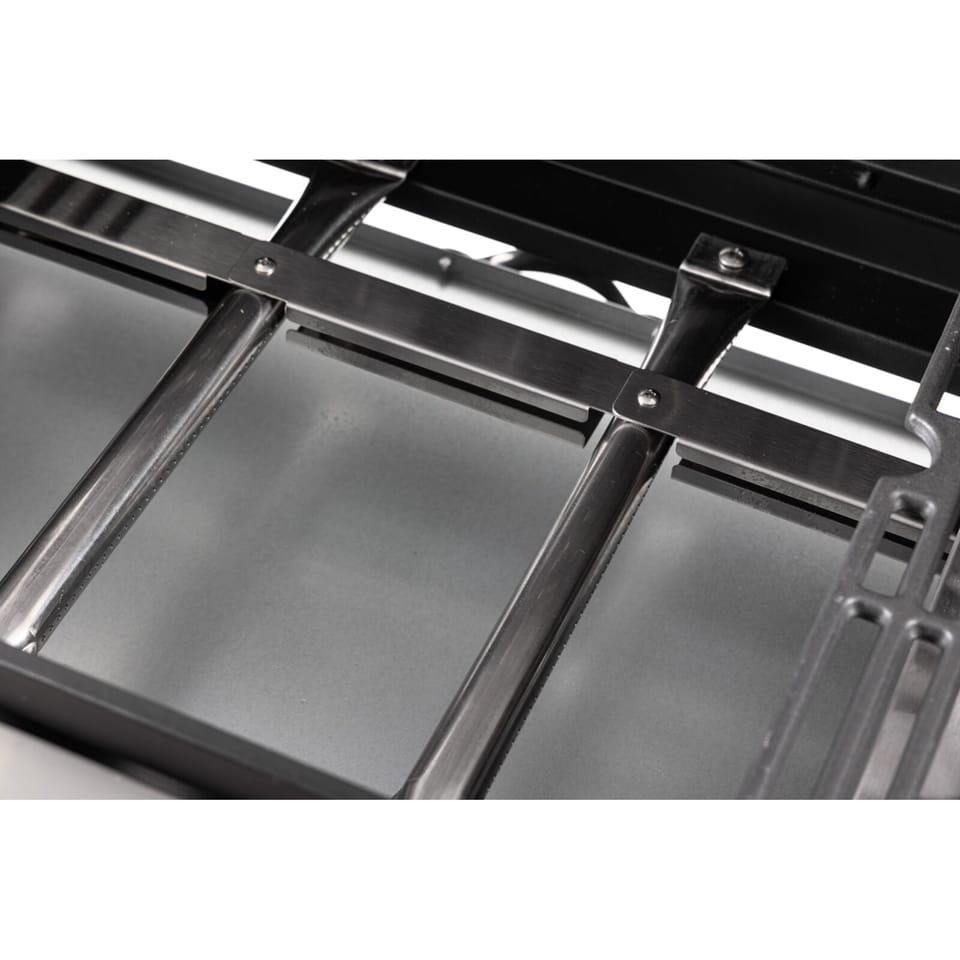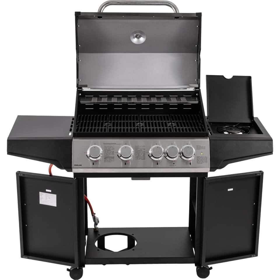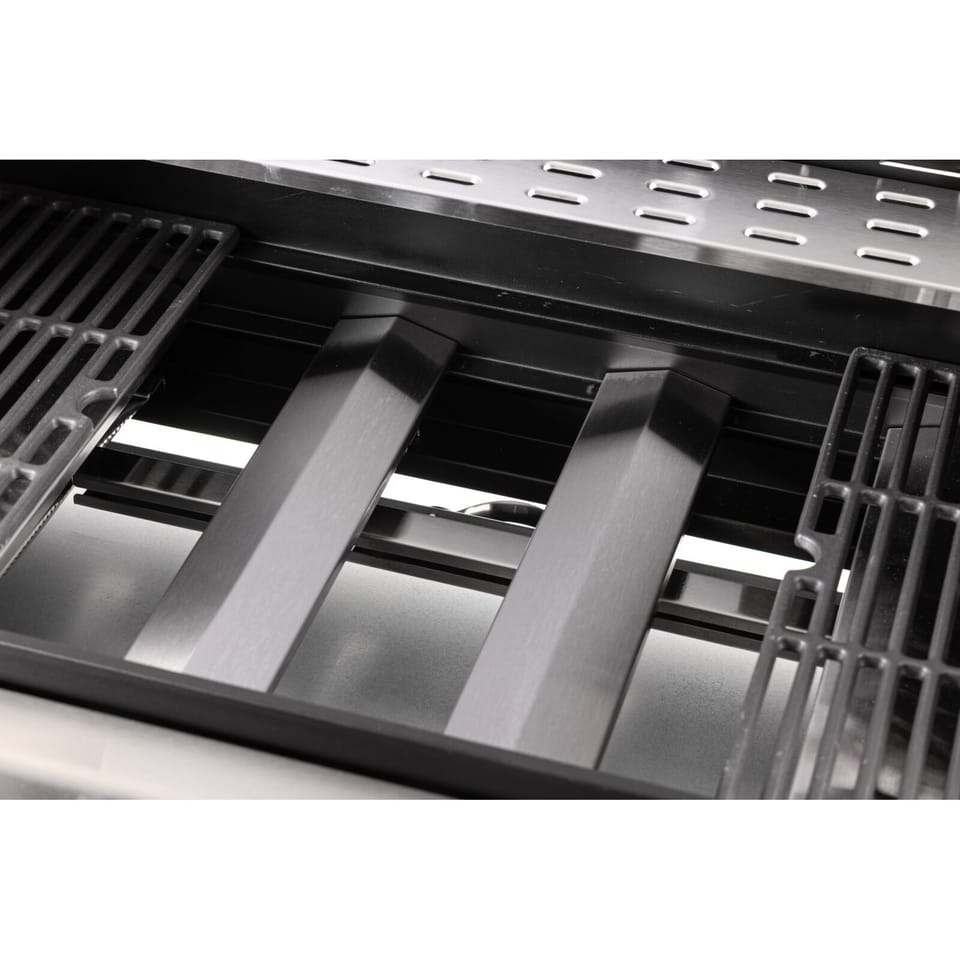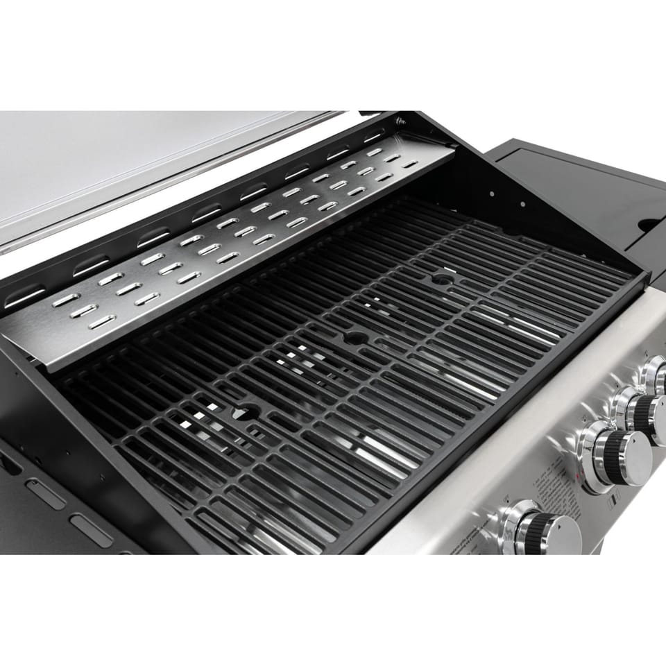 - Cztery palniki główne oraz palnik boczny oferują łączną moc 15,75 kW, co zapewnia szybkie nagrzewanie oraz równomierne rozprowadzanie ciepła na całej powierzchni grillowania