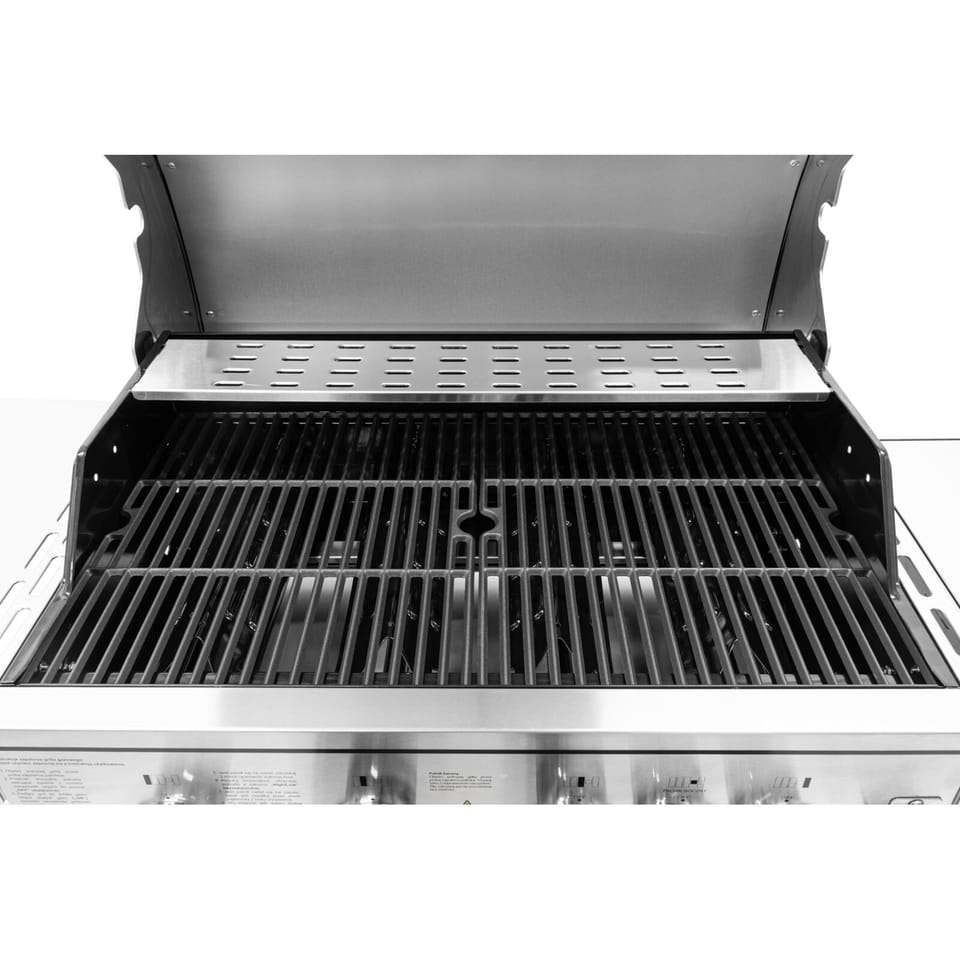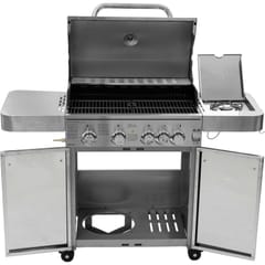- Cztery palniki główne umożliwiają precyzyjne zarządzanie strefami ciepła, a palnik boczny zwiększa funkcjonalność grilla, pozwalając na przygotowanie dodatków lub sosów równolegle z grillowaniem