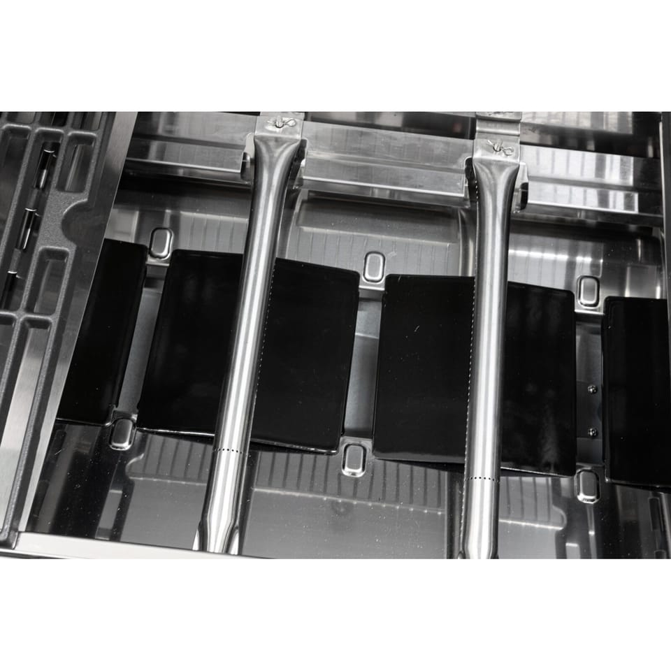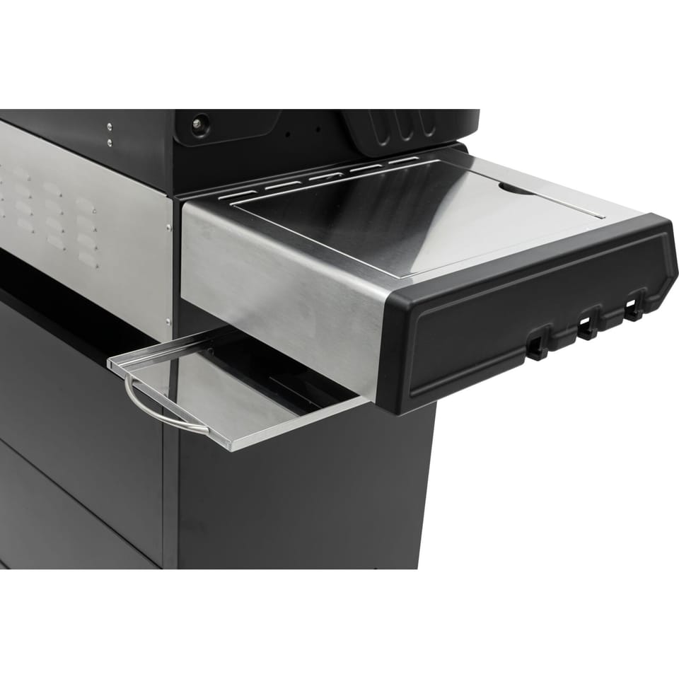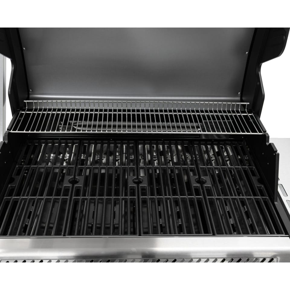 - Cztery palniki główne, palnik boczny typu infrared oraz tylny palnik ze stali nierdzewnej umożliwiają jednoczesne przygotowanie wielu potraw, grillowanie w wysokiej temperaturze oraz pieczenie metodą pośrednią lub na rożnie