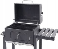 Funkcjonalność: Płynna regulacja wysokości paleniska oraz obecność dodatkowego rusztu i bocznej półki zwiększają komfort grillowania.