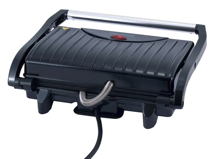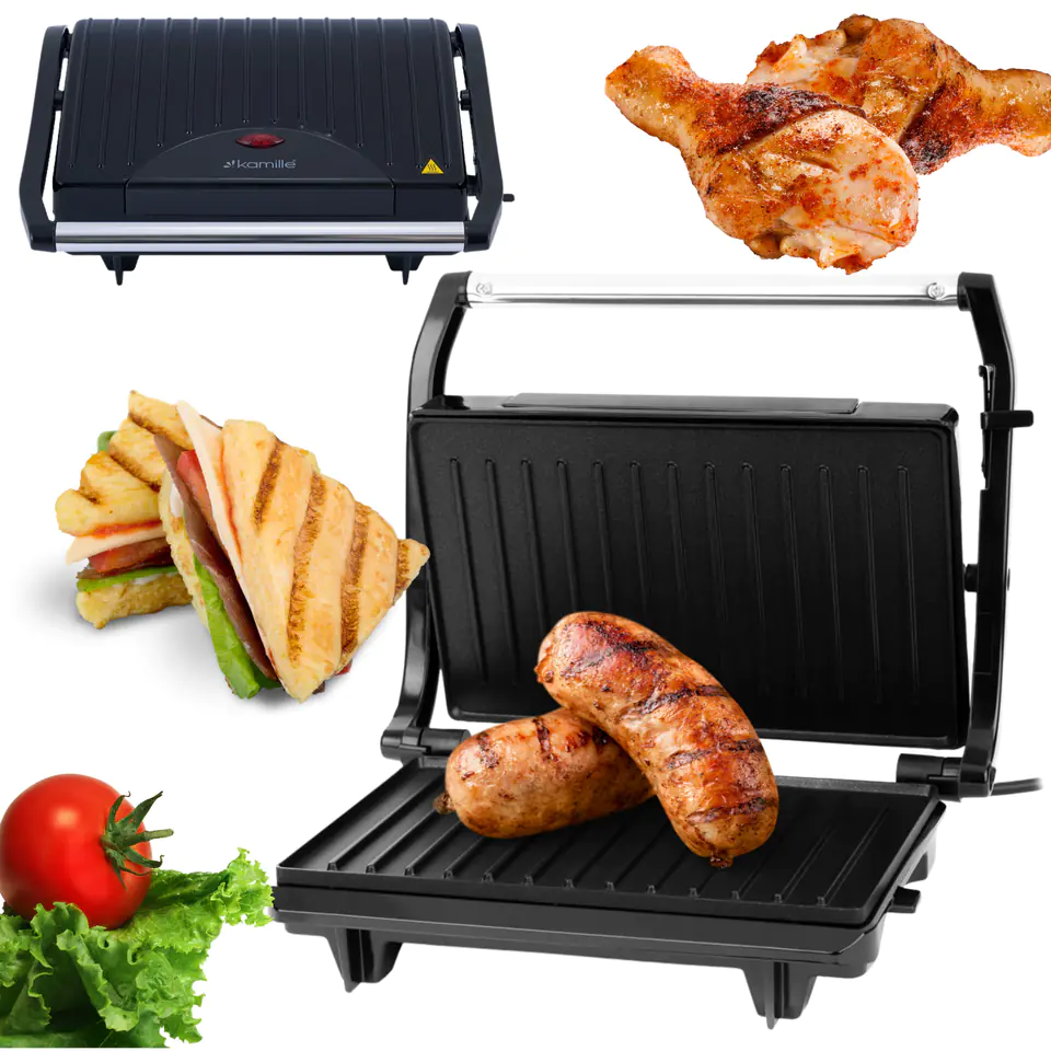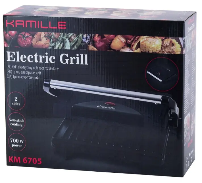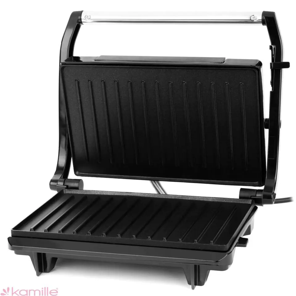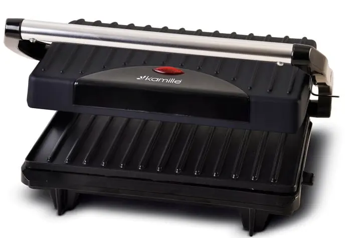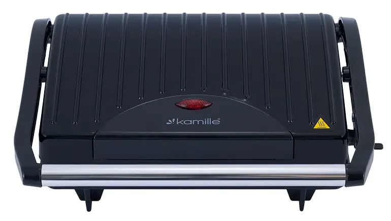 Grill, opiekacz elektryczny Kamille posiada też dwie diody, które informują o zasilaniu i nagrzaniu. Regulacja temperatury odbywa się za pomocą pokrętła dzięki czemu łatwo przyrządzisz potrawy według preferencji. Nienagrzewający się uchwyt oraz płyty otwierane 180° ułatwi użytkowanie urządzenia podczas przygotowywania posiłku. Powierzchnie pokryte powłoką nieprzywierającą możesz łatwo oczyścić nawet zwykłym ręcznikiem papierowym.