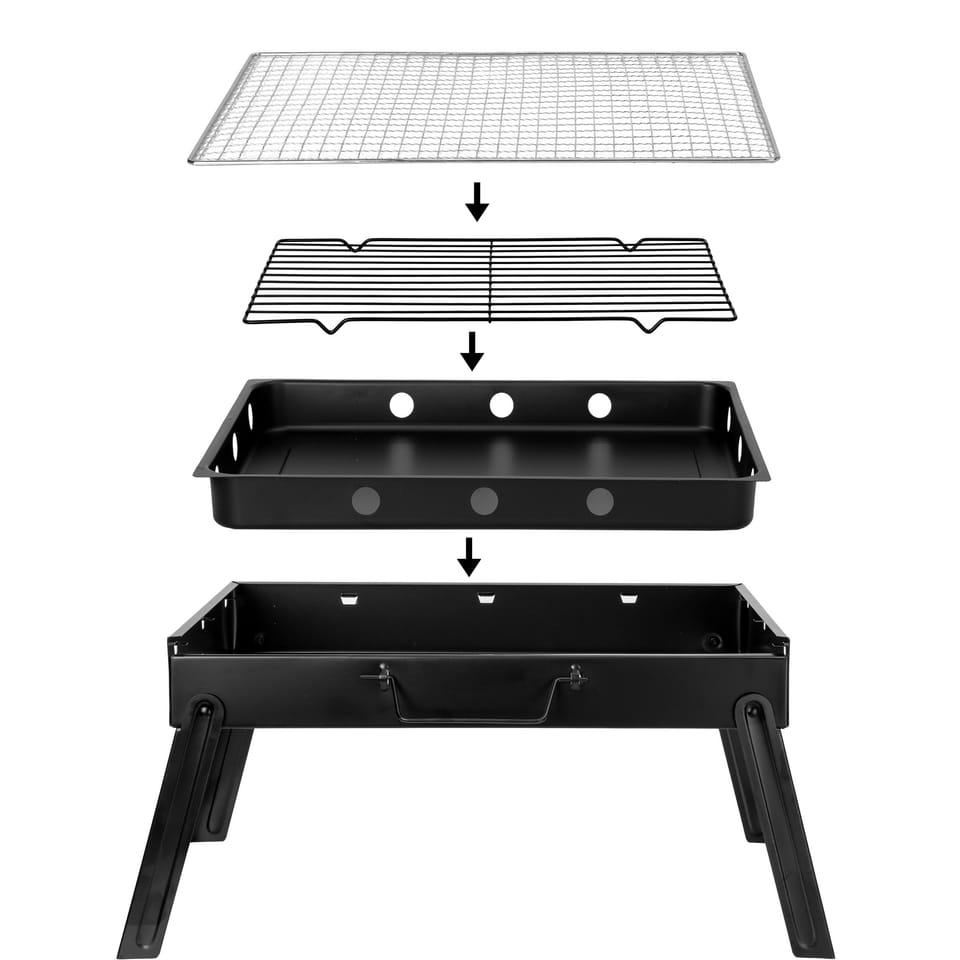 Grill turystyczny przenośny TULIN⭐ Duży ruszt ⭐ Składany w formie walizki⭐ Łatwy w transporcie i czyszczeniu ⭐ Nie wymaga montażu ⭐ Zakup od producenta ♨️ Grill turystyczny TULIN - kompaktowy i wygodny w użyciu ♨️Grill przenośny turystyczny TULIN to idealne rozwiązanie dla miłośników grillowania na świeżym powietrzu. Wykonany z materiałów najwyższej jakości, zapewnia trwałość i wygodę użytkowania. Kompaktowe wymiary i praktyczny design sprawiają, że grill TULIN jest łatwy do przenoszenia i przechowywania, co czyni go doskonałym wyborem na kemping, piknik czy wycieczkę za miasto. Stylowy czarny kolor grilla oraz chromowany ruszt dodają mu elegancji, dzięki czemu będzie się świetnie prezentować w każdej scenerii. ♨️ Specyfikacja:Materiał: Stal malowana proszkowoMateriał rusztu: stal nierdzewna chromowanaMożliwość złożenia w walizkę: takRączka ułatwiająca przenoszenie: takStabilne, rozkładane nóżki: takNie wymaga montażu: takKolor: czarnyWaga: 1,86 kg♨️ Wymiary:Szerokość: 43 cmWysokość rozłożonego: 22 cmWysokość złożonego: 7 cmGłębokość: 30 cm ✅ Unikalna, składana konstrukcjaŁatwa do przenoszenia i przechowywania dzięki kompaktowym wymiarom po złożeniu. ✅ Składany w formie walizki z uchwytem do przenoszeniaSkłada się do rozmiarów walizki, co ułatwia transport. Wygodny uchwyt zapewnia łatwe przenoszenie. ✅ Duży, gęsto spleciony ruszt ze stali nierdzewnej chromowanejIdealny do równomiernego grillowania większej ilości jedzenia. ✅ StabilnośćSolidne nogi zapewniają stabilność podczas grillowania. ✅ Otwory wentylacyjneGrill TULIN wyposażony jest w otwory wentylacyjne, które zapewniają optymalny przepływ powietrza podczas grillowania. Dzięki temu łatwiej kontrolować temperaturę i utrzymać równomierne ciepło, co przekłada się na doskonałe rezultaty kulinarne. UWAGA | Przedstawione kolory należy traktować poglądowo - mogą odbiegać od rzeczywistych ze względu na różne ustawienia monitorów oraz proces obróbki zdjęć • Rzeczywiste wymiary mogą się różnić od podanych w opisie. Tolerancja błędów może wynosić +/- 2 cm