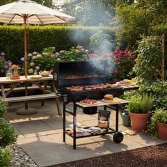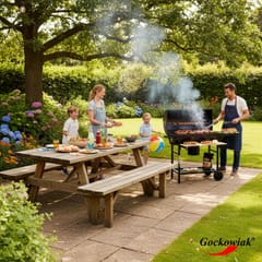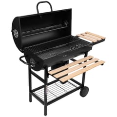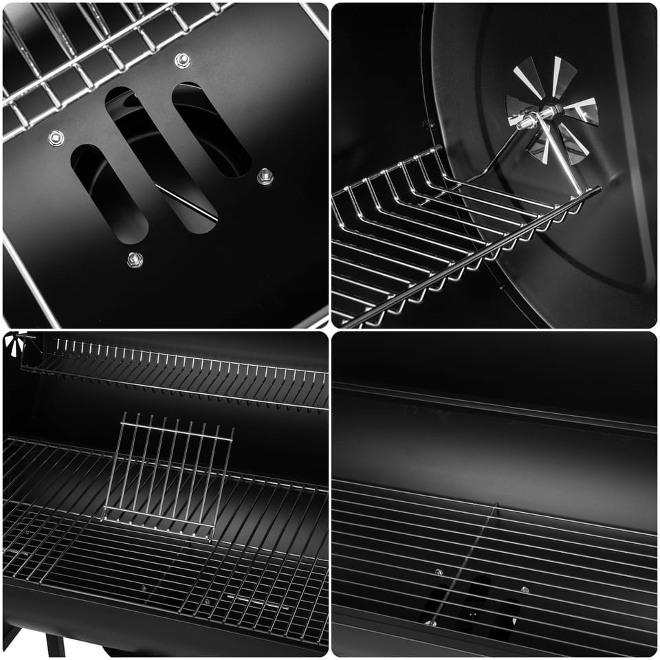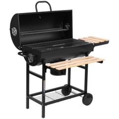 Grill węglowy ogrodowy 2 ruszty popielnik BAREL WOODModel: Barel wood | Półki: dwie drewniane składane, kształt: beczka✨ Barel Wood – solidny grill węglowy dla całej rodziny ✨Grill węglowy Barel Wood to idealne rozwiązanie dla osób, które chcą cieszyć się aromatem tradycyjnego grillowania bez stresu o przypalenie potraw czy brak miejsca na ruszcie. Dzięki solidnej stalowej konstrukcji, dużej powierzchni grillowania i wbudowanemu termometrowi przygotujesz perfekcyjne mięso, warzywa czy ryby za każdym razem. To grill, który daje Ci pełną kontrolę, wygodę użytkowania i świetny efekt podczas rodzinnych spotkań w ogrodzie.✍️ Specyfikacja:Konstrukcja: stal malowana proszkowoDwa chromowane, nierdzewne rusztyTermometr: wbudowany w pokrywę (do 350°C)Popielnik: wyjmowany, metalowy, z regulacją ciąguWywietrzniki: 4 szt. (po 2 z każdej strony)Półki: 2 drewniane, składanePara kółek transportowychDodatkowa półka: dolna kratka na węgiel lub akcesoria✍️ Wymiary:Wysokość całkowita: 93 cmSzerokość całkowita: 111 cmGłębokość całkowita: 64 cmWymiary beczki: 76 x 38 x 40 cmGłówny ruszt: 70 x 35 cmDrugi ruszt: 67 x 13 cmPrzednia półka: 64 x 21,5 cmBoczna półka: 36 x 22 cmŚrednica kółek: 15 cmDolna kratka: 59 x 29 cmInformacje dodatkowePrzedstawione kolory należy traktować poglądowo - mogą odbiegać od rzeczywistych ze względu na różne ustawienia monitorów oraz proces obróbki zdjęć. Rzeczywiste wymiary mogą się różnić od podanych wyżej. Tolerancja błędów może wynosić +/- 5%.Marka:GockowiakKod EAN:5904512610113Kolor:czarny + drewnoWysokość: 93 cmSzerokość: 111 cmGłębokość całkowita: 64 cm